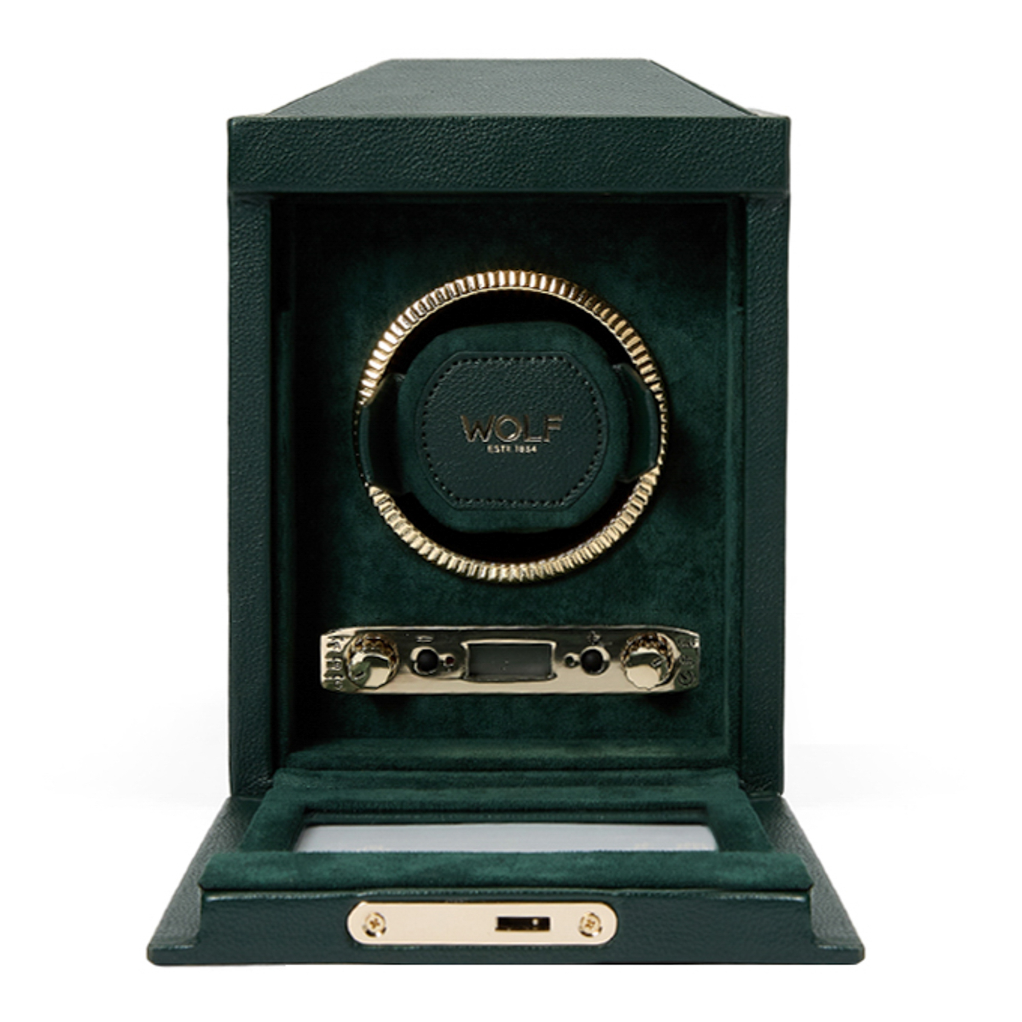 19,69 x 20,32 x 22,86 cm Inovație patentată – Fiecare dispozitiv de întors ceasuri WOLF numără precis rotațiile. Toate celelalte dispozitive de acest fel de pe piața doar estimează numărul de rotații. Manșetă dinamică: Manșeta dinamică patentată „blochează” ceasul în tamburul rotativ pentru o potrivire perfecta. Spumă de densitate scăzută pentru a se adapta la toate mărimile încheieturii fără a pune presiune pe brățară.Exclusiv: Revenire la start – Ceasul va reveni la poziția în care a început după finalizarea ciclului1 modul de înfășurareOpțiuni de rotație: Întârziere de pornire de 10 secunde. Poate fi setat între 300 și 1.200 TPD (rotații pe zi). Dublați cantitatea de TPD selectând setarea bidirecționalăSetări direcționale: în sensul acelor de ceasornic, în sens invers acelor de ceasornic și bidirecțional