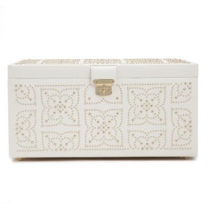 Clasicul se întâlnește cu contemporanul în colecția Sophia. Caseta rotunda cu fermoar Sophia este concepută pentru a proteja bijuteriile ținând cont de stil dar și de funcționalitate. Disponibilă în culori neutre dulci și culori intense, inspirate din natură, Sophia va arata perfect pe comodă sau în geanta de călătorie.